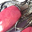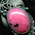 Родонит (от греческого слова "rhodon"- роза) — минерал, силикат марганца, образовавшийся в особых условиях на контакте магмы с осадочными породами, богатыми марганцем. Поделочный камень, в котором кроме одноименного минерала присутствуют черные дендриты и прожилки гидроксидов и оксидов марганца, бурые участки бустамита, волокнистого инезита и другие включения, придающие камню высокую декоративность. В Эрмитаже хранится множество художественных изделий из родонита работы русских мастеров XIX века.